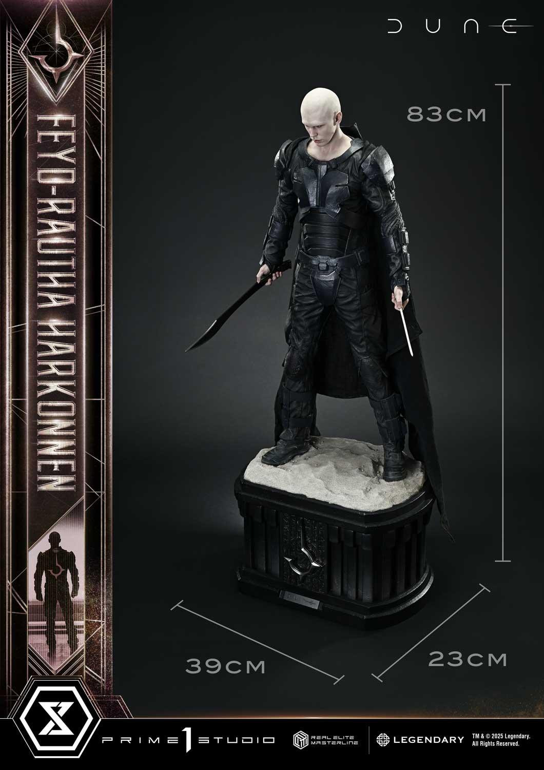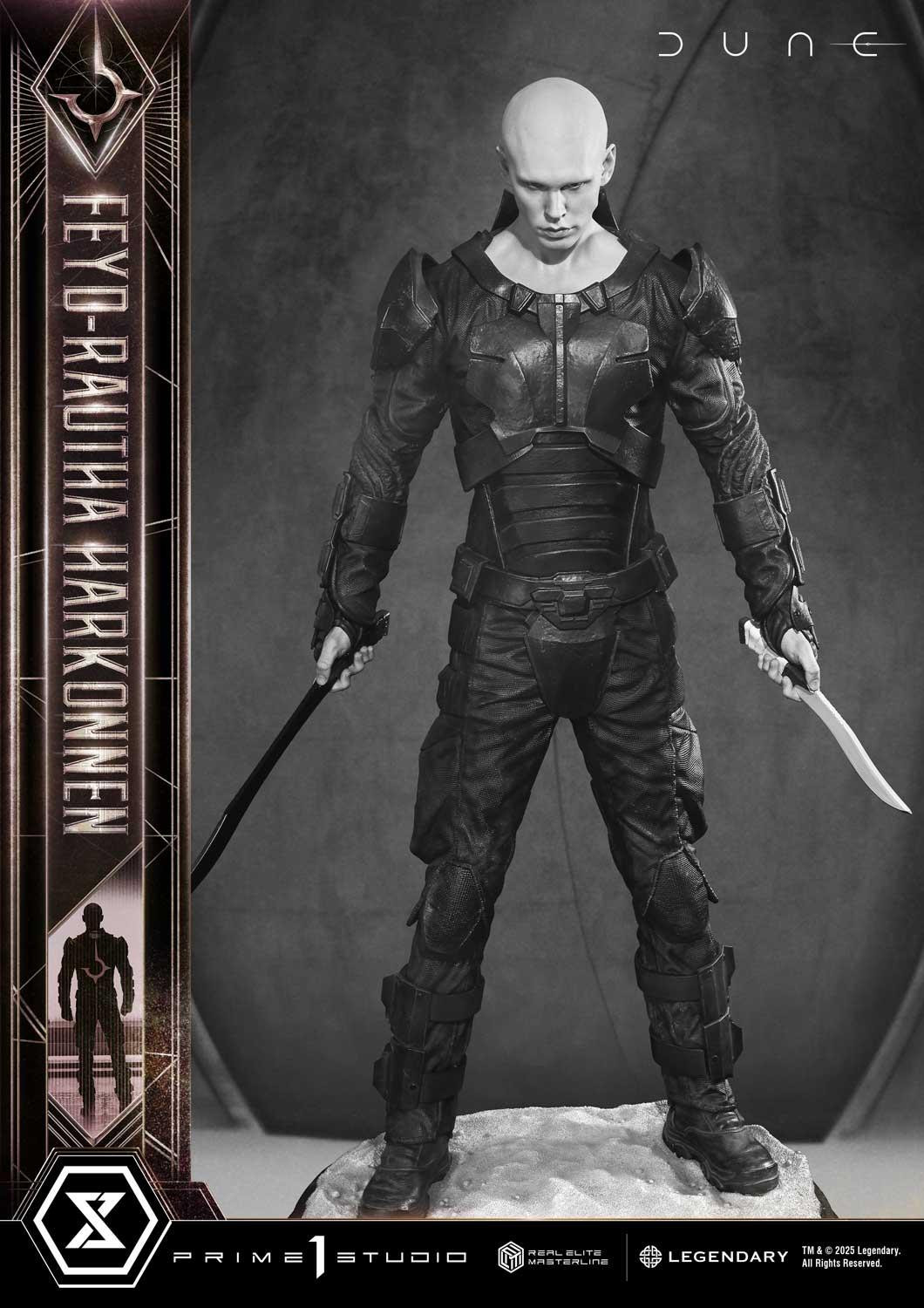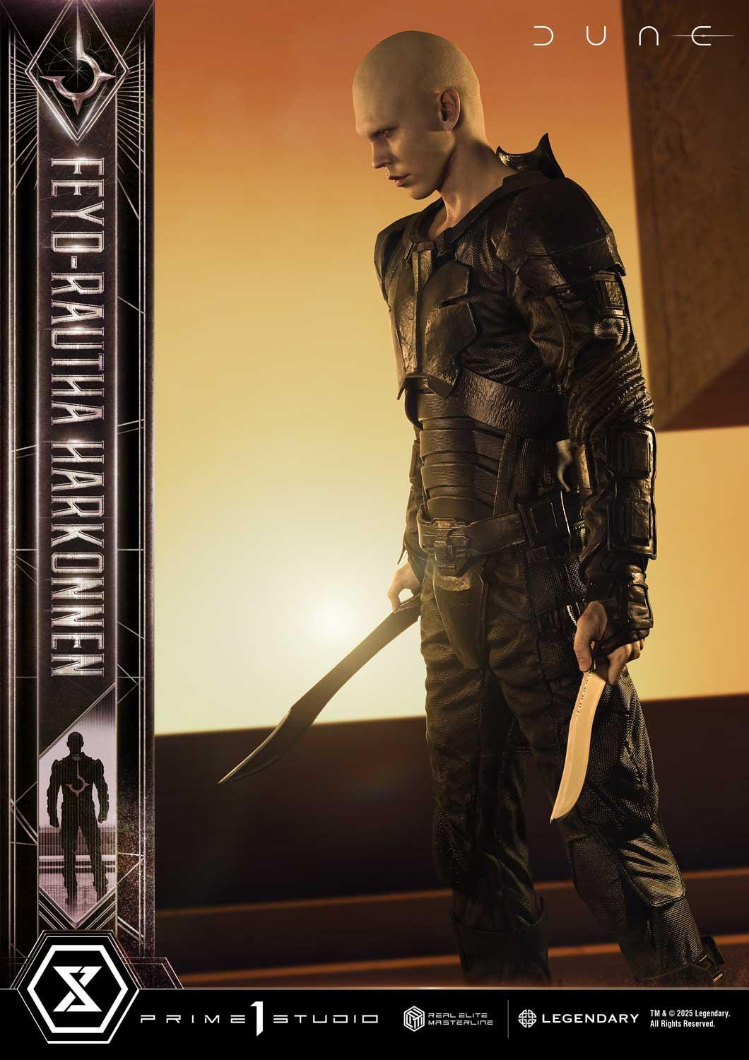 主人公ポール・アトレイデスの命を狙う、ハルコンネンの次期当主候補。その卓越した戦闘能力とサディスティックな精神を、静かな臨戦態勢に込めたスタチューです。同じリアルエリートマスターラインからリリースしたポールと並べれば、未来を視る救世主と血に飢えた支配者、両極の立ち位置が鮮明に浮かび上がります。