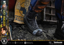 レイダーに連れ去られた父を救うため、暴力と混沌が支配する地上——ウェイストランドへと飛び出したルーシー・マクレーン。彼女の波乱に満ちた旅を、1/4スケールで切り取った1体です。辺りを見回しながらゆっくり歩くポージングは、彼女の楽観的なキャラクターを体現したもの。故郷Vault 33の教育による品行方正さも、まっすぐに伸びた背筋から感じられるはずです。