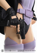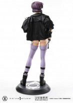 浮かび上がる文字まで表現した緋色のカメラアイ。斜め前に下がるショートヘアの毛流れ。聡明な表情が浮かぶ頭部は、義体の人工的なニュアンスをわずかに込めつつ練り上げたものです。美しいプロポーションを形成する体幹と四肢も同様で、精巧なセブロC-26Aがその圧倒的な戦闘能力を一層際立たせます。さらに愛用のジャケットは脱着が可能。上質なファブリック素材の艶と質感を纏わせる。軽快な姿でよりアクティブな場面を演出する。思いのままにディスプレイを創り出してください。