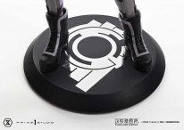世界限定50体のボーナス版には、「セブロ M-5」を握った右手を追加しました。第1話冒頭の印象も強いハンドガンが、キービジュアルをより鮮明に浮かび上がらせます。またベースにあしらった公安9課のシンボルマークも、抑制のきいたシルバーで彩色。クールな雰囲気を演出します。