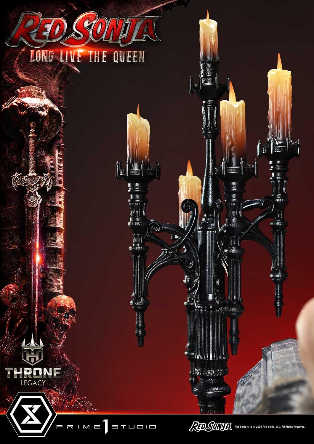 作品の誕生50周年を記念して描かれた、イアン・マクドナルドによる公式アートワーク。この『Red Sonja: Long Live the Queen(レッドソニア “女王に栄光あれ”)』と題された1枚に着想を得た、1/3スケールスタチューです。敵地での血戦に勝利し、大胆なポージングで玉座を占拠する女戦士。その荒々しくも美しい姿を、立体へと昇華させました。