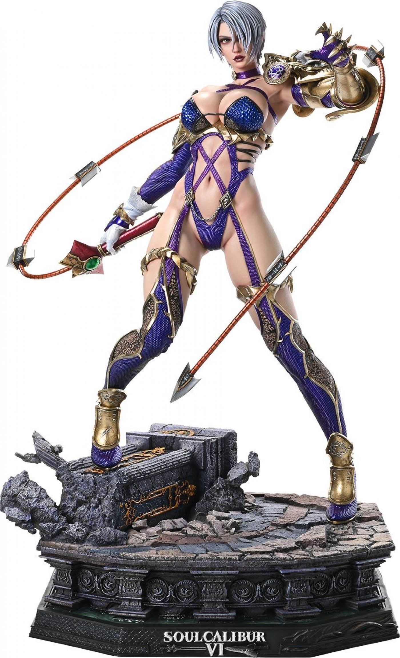 「私の躾は厳しいわよ」 絡みつく孤高の刃を、1/4スケールでリアルに立体化 リブートをテーマに、シリーズへ新風を吹き込んだ『ソウルキャリバー 6』。最高峰のゲーム性と映像美を誇る武器格闘アクションから、「アイヴィー」がリアルエリートマスターラインにラインナップ。 邪剣の破壊を誓い、数奇な運命を辿る名門バレンタイン家の養女。彼女の気品と剣技を1/4スケールで表現した1体です。鞭形状の魔剣アイヴィーブレードを振るうポージングは、キャラクタービジュアルに着想を得たもの。身体のひねりや踏みつけた右足...