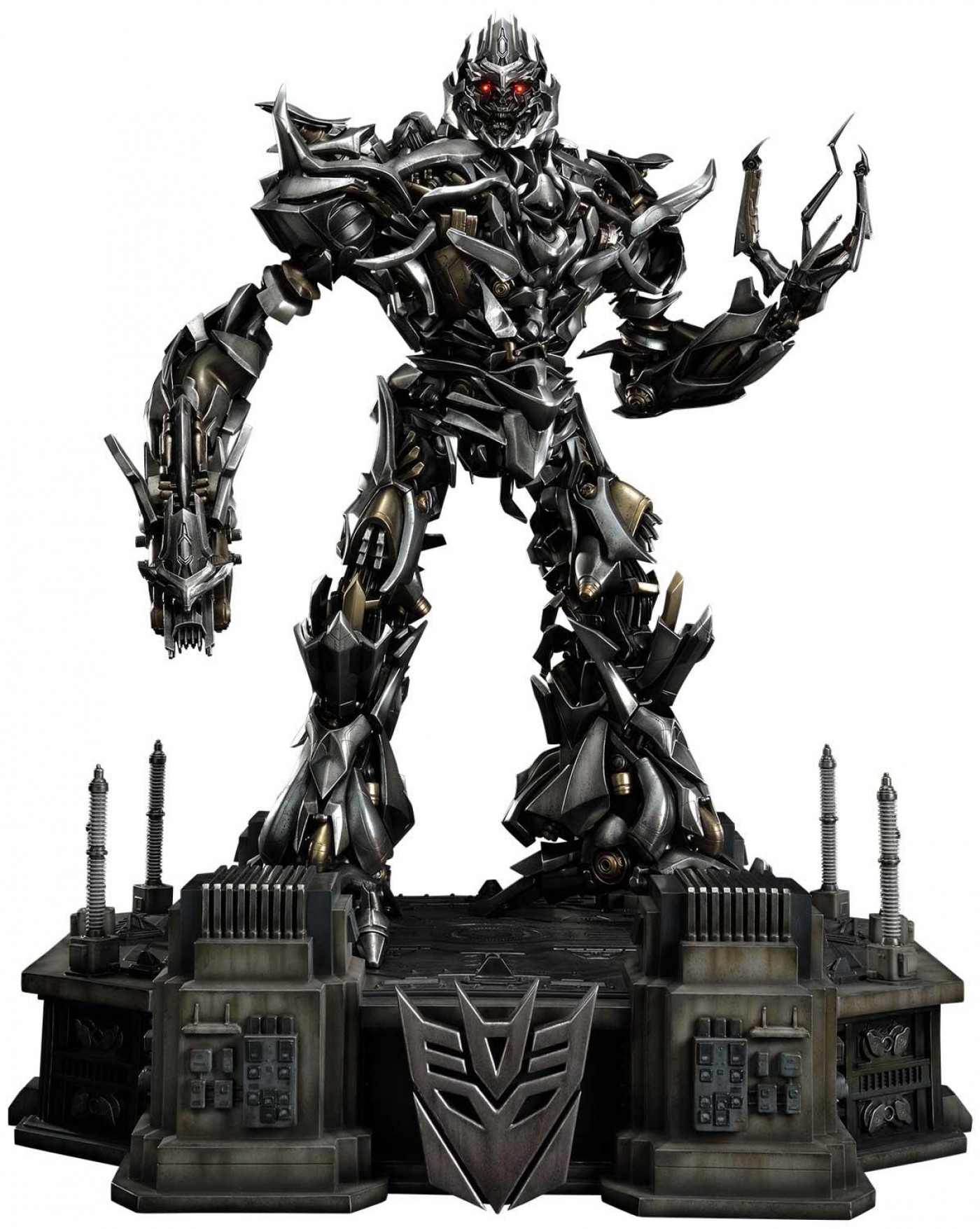 10年の歴史から生まれた原初の姿。 実写映画第1作目、ディセプティコンのリーダーが登場 プライム1スタジオの初作として『リベンジ』から登場し、その後もさまざまなバリエーションで立体化されてきたメガトロン。10年の歴史を積み重ねた今年、ついに実写映画第1作目『トランスフォーマー』の雄姿がミュージアムマスターラインに登場! 本スタチューは映画の初登場シーンをモチーフにしたもの。膨大な資料を徹底的に調査し、地球外から来た宇宙船を思わせる曲線的で洗練されたデザイン、豊富な情報量を持つディテール、ダメ...